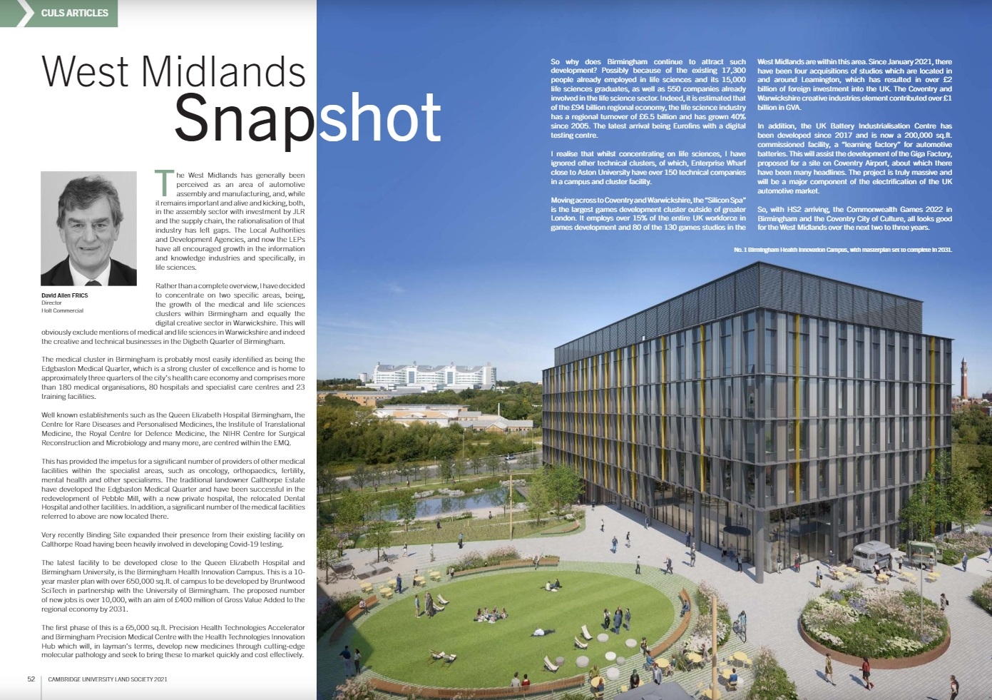 Holt Commercial Director, David Allen, has contributed, once again, to the Cambridge University Land Society’s annual magazine – this year focussing on some of the events and sectors that are making the West Midlands a great place to invest.