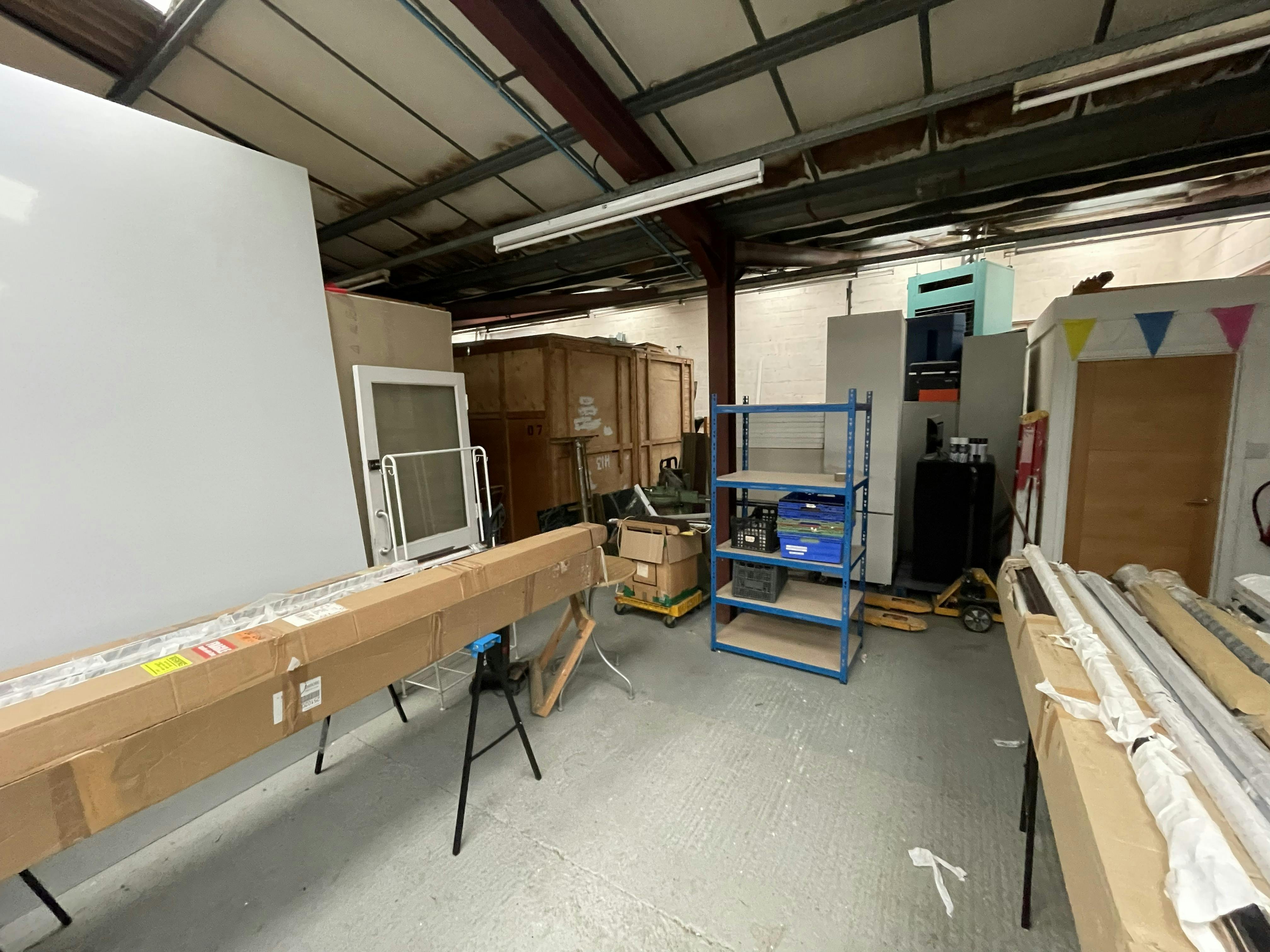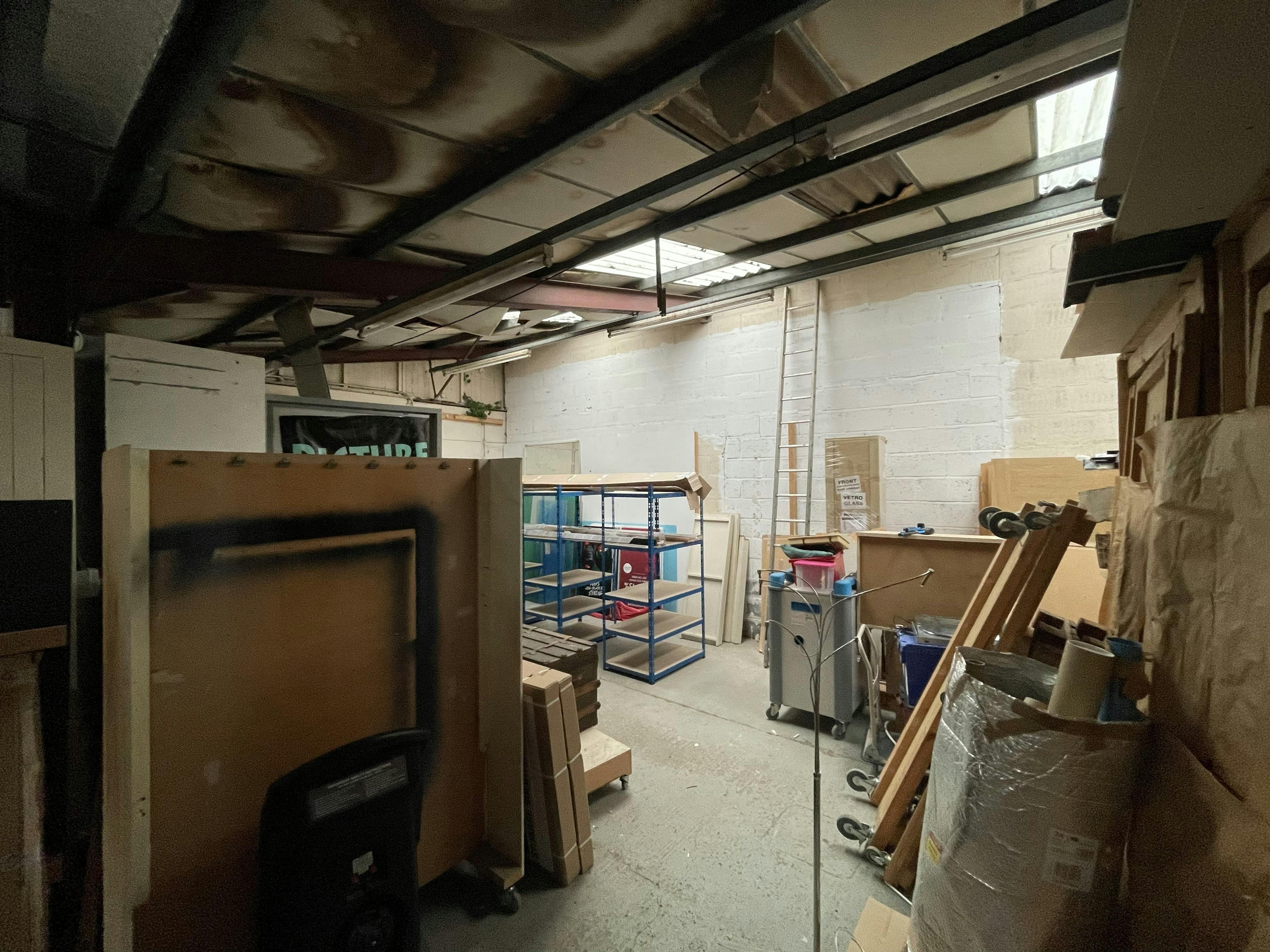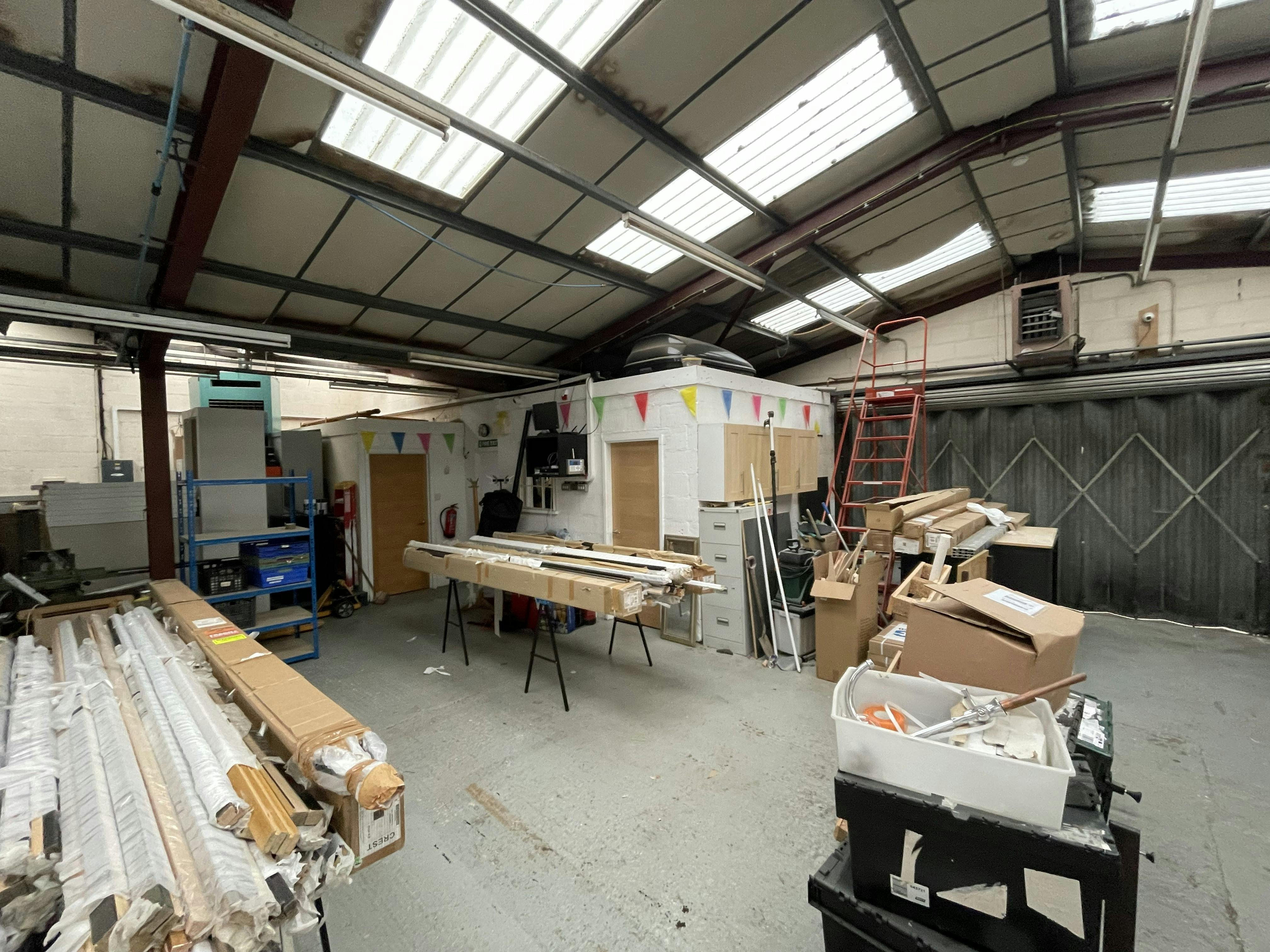 The property comprises a semi-detached steel portal frame industrial unit with brick elevations to the front and concrete panel cladding to the side and rear elevations with a rear mono pitch roof extension. Internally the unit has lighting provided by a mixture of LED and mounted fluorescent strips, WC and kitchen facilities as well as two small offices formed from concrete blocks and further internal store/work area structures created at the rear. Externally there is a small yard type area to the rear and a loading area to the front. There is also a good sized car parking area.