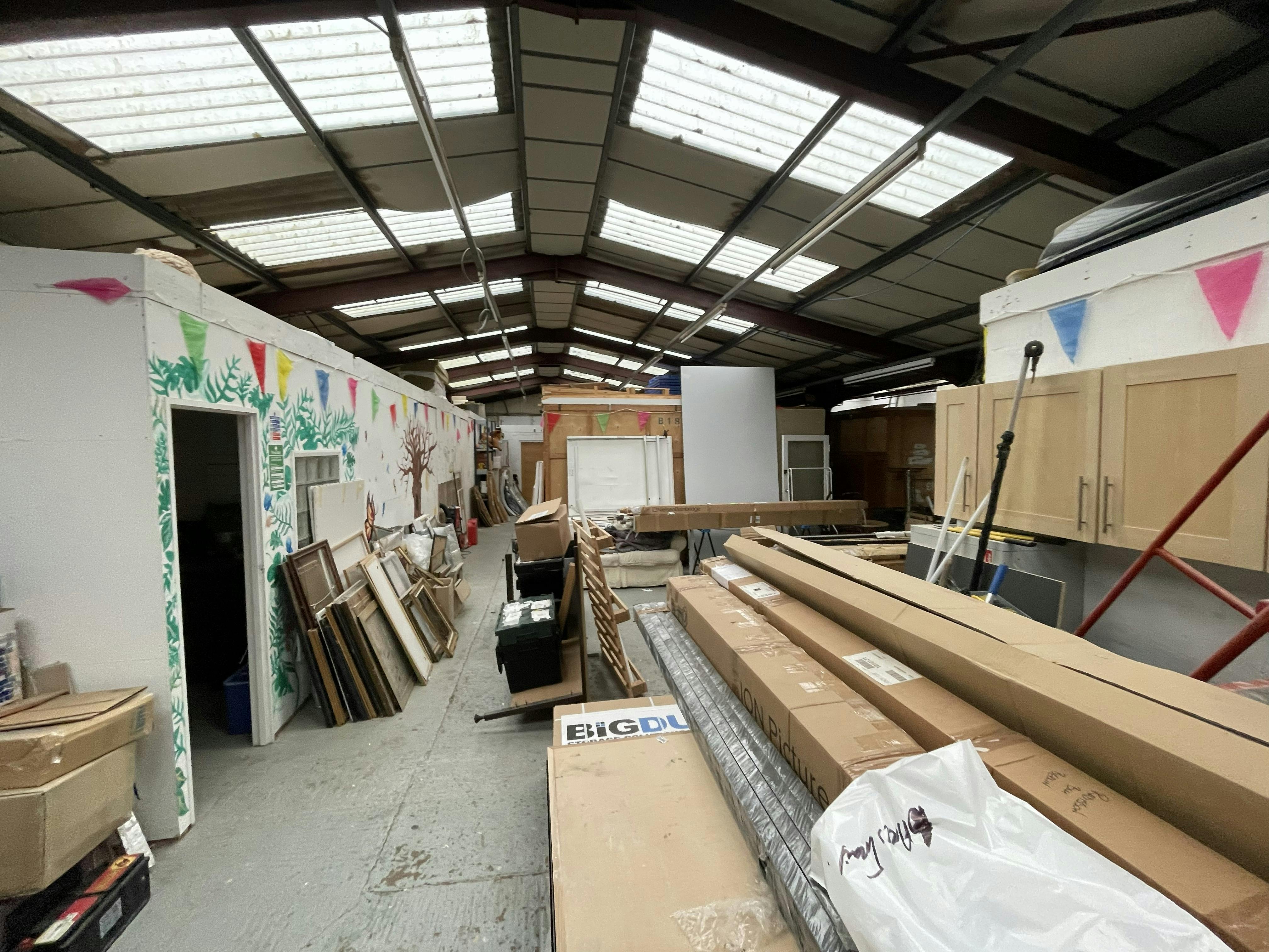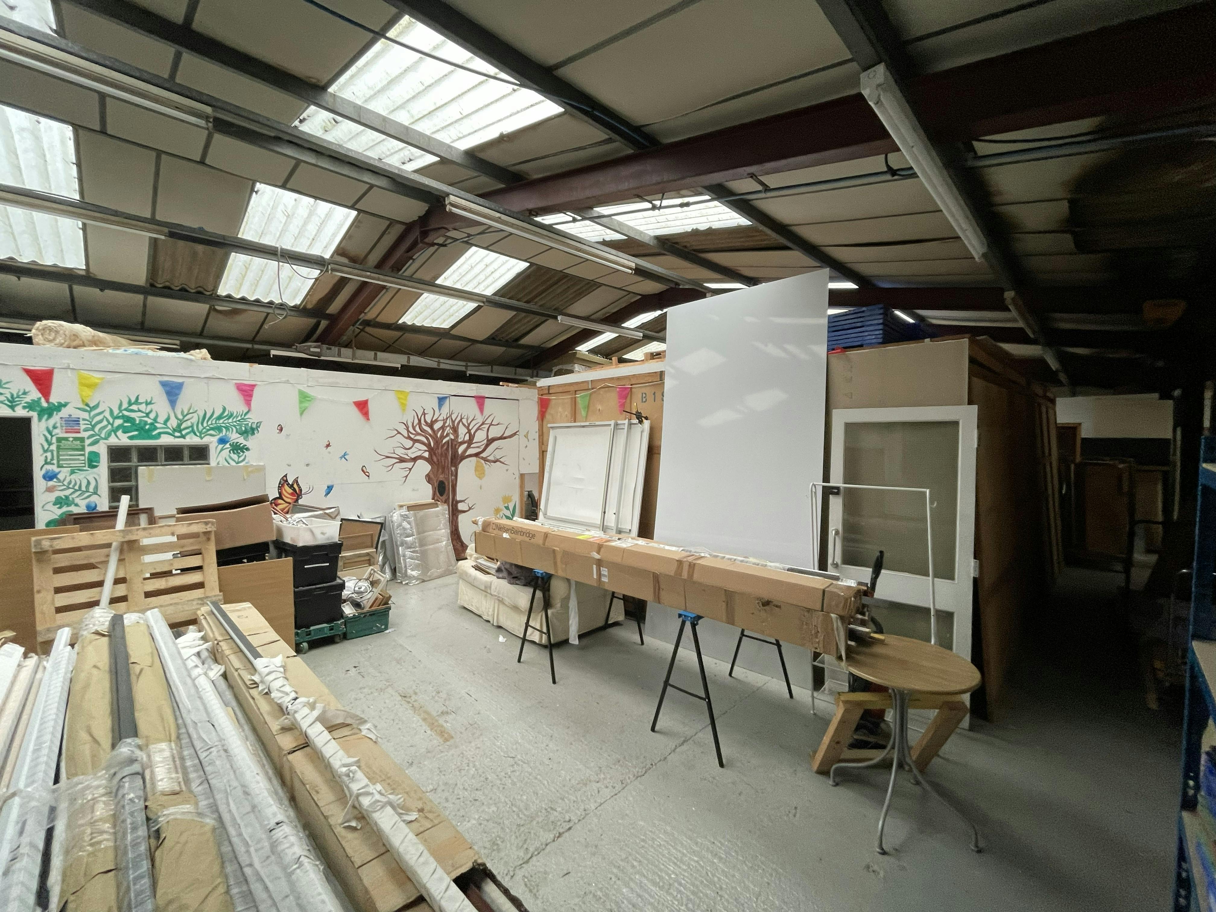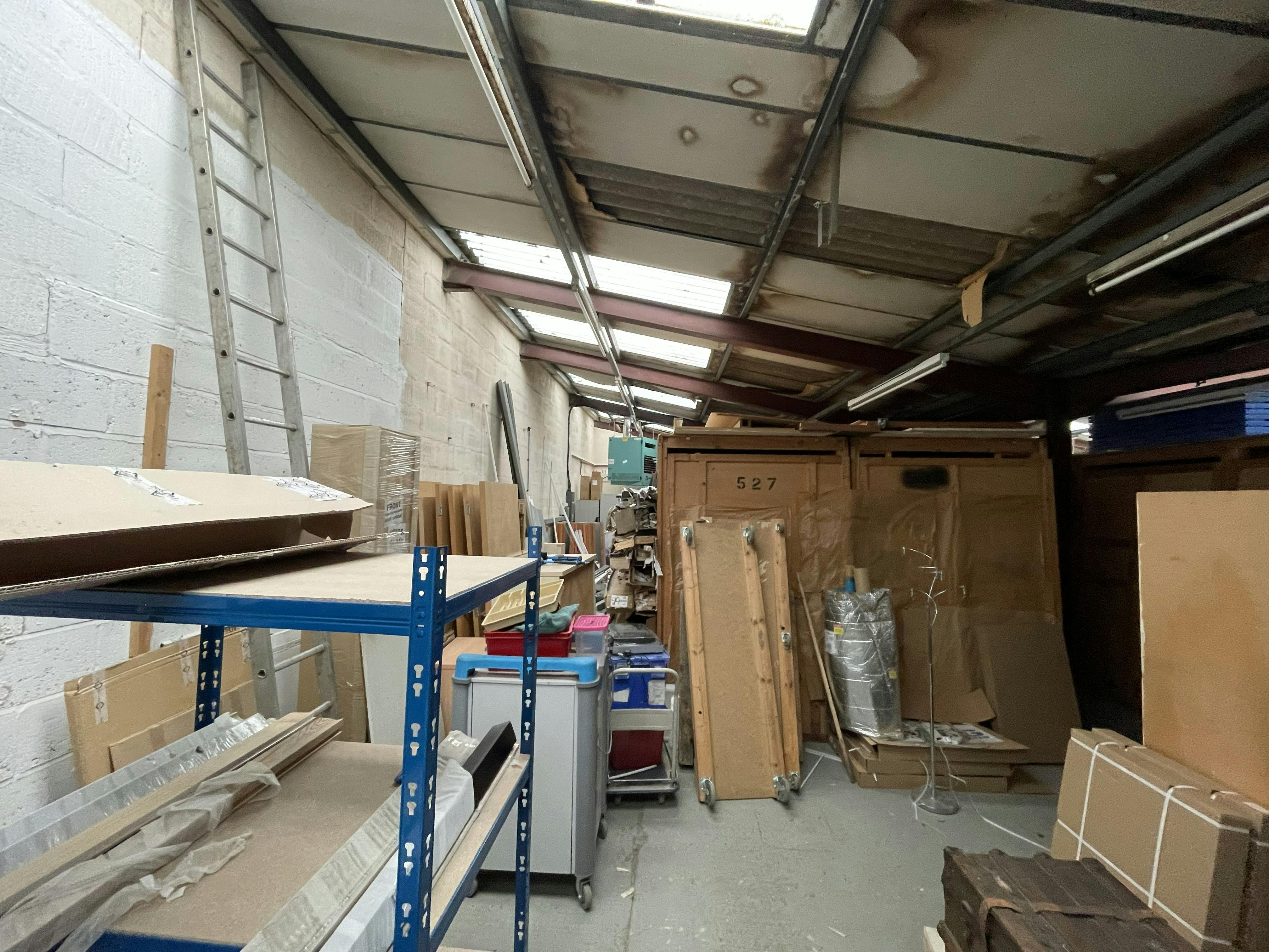 The property comprises a semi-detached steel portal frame industrial unit with brick elevations to the front and concrete panel cladding to the side and rear elevations with a rear mono pitch roof extension. Internally the unit has lighting provided by a mixture of LED and mounted fluorescent strips, WC and kitchen facilities as well as two small offices formed from concrete blocks and further internal store/work area structures created at the rear. Externally there is a small yard type area to the rear and a loading area to the front. There is also a good sized car parking area.